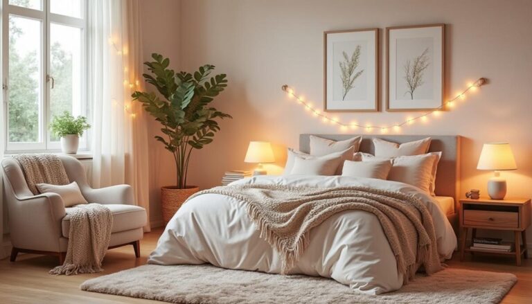 Choisis des éclairages indirects, guirlandes ou spots LED avec lumière chaude pour mettre en valeur tes photos sans éblouir.