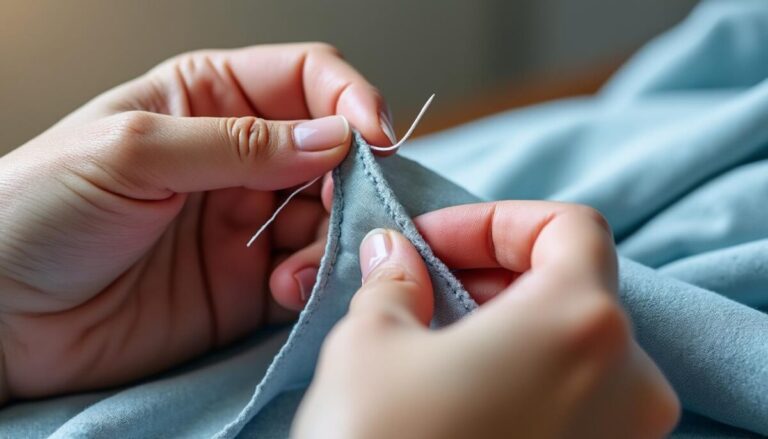 Privilégie un fil ton sur ton, utilise une aiguille fine, et maîtrise le point invisible à la main ou la sous-piqûre.